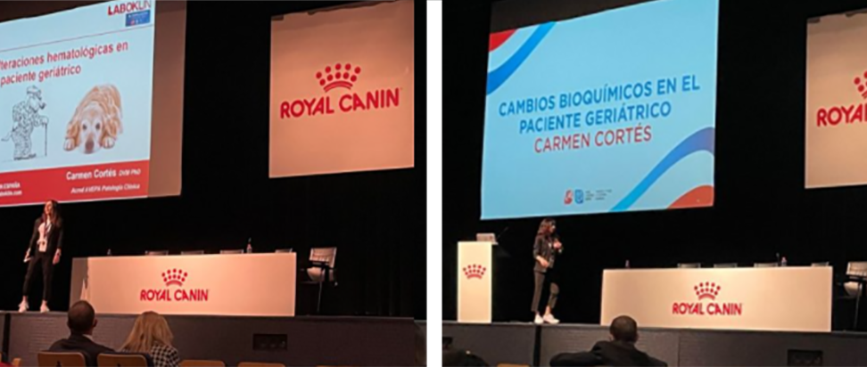 Os dejamos algunas fotos que resumen nuestra presencia en el congreso, destacando por supuesto la ponencia de nuestra directora Carmen Cortés, DVM, PhD y acreditada por AVEPA en Patología Clínica sobre cambios analíticos en el hemograma y la bioquímica de pacientes geriátricos.