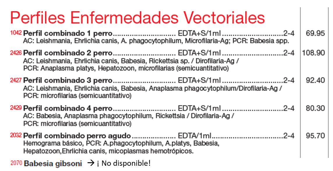 Nuestros perfiles de enfermedades vectoriales no se ven afectados por este factor, ya que la Babesia que se determina en los perfiles es Babesia canis.